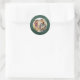 Este hermoso pegatina de vacaciones verdes cuenta con una foto central con marco circular y una simple tipografía de Feliz Navidad. Este moderno pegatina también presenta un diseño geométrico a rayas azul metálico falso y un ambiente rústico de color verde oscuro. Vea esta colección festiva de temporada para opciones de color adicionales y tarjetas de Navidad de coordinación.