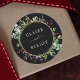 Este pegatina presenta eucalipto de acuarela pintado, hojas verdes, bayas rojas con un marco falso de círculo dorado. Para una personalización más avanzada de este diseño, haga clic en el enlace "Personalizar más adelante". También están disponibles los elementos coincidentes.