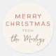 Dé a sus paquetes de vacaciones un toque festivo retro con nuestras pegatinas navideñas Red & Green Retro. Este pegatina redondo presenta una "Feliz Navidad" en tipografía linda y el nombre de tu familia se muestra en una fuente caligráfica, lo que lo convierte en el toque de acabado personalizado perfecto para regalos, tarjetas o decoración de vacaciones. Vea la colección enlazada en esta página para ver elementos coincidentes, o visite nuestra tienda para más etiquetas de Navidad.