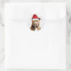 Perfecto para la envoltura de regalos, el envío de tarjetas y alrededor de pegatinas festivos para el amante de los perros de un Pit Bull Terrier, este perro Navidad gracioso usa un lindo sombrero de Santa.