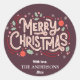 Pegatina Redonda Festividad moderna borgoña y blanca Feliz Navidad