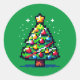 Pegatina Redonda Festividad Pixelada: Diseño de árbol de Navidad de