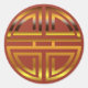 Este elegante diseño moderno de pegatina presenta un motivo de longevidad circular que se asocia con frecuencia con las celebraciones de cumpleaños. Los colores son oro no metálico sobre fondo rojo. El color de fondo puede cambiarse mediante una selección de color diferente en la paleta de colores. A lo largo de los siglos, el motivo de la longevidad se ha utilizado ampliamente en prendas de vestir, muebles, arquitectura y arte folclórico en China como una manera de traer bendiciones al hogar. Este pegatina tradicional es estupendo, ya que se celebran fiestas de cumpleaños o selladores de sobres en invitaciones.