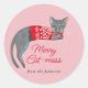 Un bonito pegatina con un elegante gato de Navidades grises sobre un fondo rosado. Obra de arte original de Caroline Bonne Müller.
