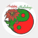 Pegatina Redonda Festividad Yin Yang Poinsettia Verde Rojo