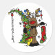 Pegatina Redonda Festividades festivas de Feliz Navidad de reno