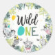 Pegatina Redonda Fiesta Animales Safari Niño Salvaje Un Primer Cump