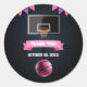 Pegatina Redonda Fiesta Baby Shower de baloncesto rosa
