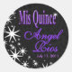 Pegatina Redonda fiesta "Black Stars Quinceañera" (negro/lila)