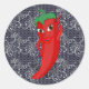 Pegatina Redonda Fiesta Bridal Shower Con Diva Pimienta Roja Picant