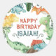 Pegatina Redonda Fiesta como un dinosaurio feliz cumpleaños persona