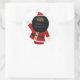 Un Santa pegatina negro, adorable, bailando sobre un fondo blanco. Diseño divertido, tonto y original que promueve la diversidad durante la temporada de vacaciones. Personalizable y perfecto para regalos y cartas.