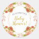 Pegatina Redonda Fiesta de Bebé Flores Acuarela Dorado Melocotón