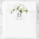 Pegatina Redonda Fiesta de cumpleaños 21 Flores de champán blanco