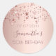 Un pegatina, favor etiqueta para una fiesta de cumpleaños número 50 (o de cualquier edad) de una chica. Un falso fondo metálico de color dorado rosa con elegantes estrellas brillantes de color rosa, de cobre. Plantilla de nombre, fecha de 50 años. El nombre está escrito en oro rosa oscuro con un gran guión de estilo moderno con letras a mano. Perfecto como sello evelope, para favores o nota de agradecimiento.