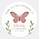 Pegatina Redonda Fiesta de cumpleaños de chicas de mariposas rosada