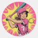 Pegatina Redonda Fiesta de cumpleaños de chicas en Softball