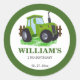 Pegatina Redonda Fiesta de cumpleaños de Cute Green Tractor