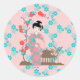 Pegatina Redonda Fiesta de cumpleaños de Geisha chica