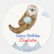 Pegatina Redonda Fiesta de cumpleaños de las vieiras de Otter Océan