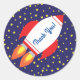 Pegatina Redonda Fiesta de cumpleaños de nave espacial con cohetes