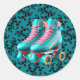 Pegatina Redonda Fiesta de cumpleaños de Neon Rollerskate verde azu