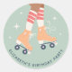 Pegatina Redonda Fiesta de cumpleaños de patinaje retro en verde sa