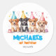 Pegatina Redonda Fiesta de cumpleaños de perro con porras