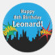 Pegatina Redonda Fiesta de cumpleaños de personalizado Superhéroe C