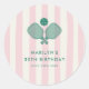 Pegatina Redonda Fiesta de cumpleaños de Pickleball Preppy Verde Ro