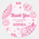 Pegatina Redonda Fiesta de cumpleaños de Pink Retro Groovy