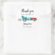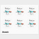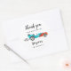 Partida de cumpleaños con el tema de los autos de carrera Cute, favorece al pegatina con el ilustracion de un auto vintage azul con llama roja. El texto dice "gracias por las carreras".