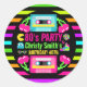 Pegatina Redonda Fiesta de cumpleaños de Retro Neon 80