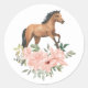 Pegatina Redonda Fiesta de cumpleaños del caballo floral rosado