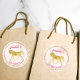 Pegatina Redonda Fiesta de cumpleaños del caballo rosa y dorado