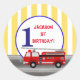 Pegatina Redonda Fiesta de cumpleaños del camión de bomberos