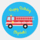 Pegatina Redonda Fiesta de cumpleaños del camión de bomberos