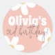 Pegatina Redonda Fiesta de cumpleaños del Chica Retro Daisy Groovy