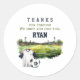 Pegatina de Ronda Clásica de la fiesta de cumpleaños del fútbol. ¡Termina la fiesta de cumpleaños de tu hijo en una nota alta con estos divertidos y personalizados pegatinas de agradecimiento! Diseñado para edades comprendidas entre los 5 y los 10 años, cada pegatina cuenta con un campo de fútbol, una bola y un gráfico jersey, perfecto para sellar bolsas de regalo, cajas de fiesta o vasos de bienvenida. Personalizar el diseño con el nombre de su hijo y un dulce mensaje para agradecer a los invitados por unirse a la celebración. A las madres les encanta lo fácil que estos pegatinas hacen la limpieza. Estos pegatinas personalizados vinculan todo el tema fiesta. El pegatina es perfecto para fiestas deportivos, celebraciones de equipo y juegos de cumpleaños al aire libre. ¡Terminemos al fiesta con una victoria!