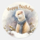 Agradables pegatinas de cumpleaños con un ermito acuático con una bufanda en un paisaje nevado. Personalizar este producto agregando la información de su fiesta.