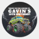 Pegatina Redonda Fiesta de cumpleaños editable de Monster Truck