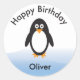 Pegatina Redonda Fiesta de cumpleaños en pingüino gracias a los peg