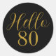 Diseño elegante de 80 cumpleaños en negro y oro. Este diseño de tipografía moderna es chic en negro y oro. Tiene el texto "Hello 80" en tipografía de moda. Este diseño elegante es perfecto para una celebración de cumpleaños número 80 inolvidable, y es ideal como sellos de invitaciones, sellos de favores de fiesta, etiquetas de regalo y sellos de tarjetas de cumpleaños. Si necesita ayuda con la personalización, o para un diseño personalizado, contácteme a través de zazzle chat.