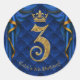 Pegatina Redonda Fiesta de cumpleaños número 3 Royal Blue & Gold Cr