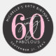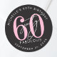 Celebra con estilo con este diseño moderno de pegatina redonda, perfecto para una celebración de cumpleaños "Sesenta y Fabuloso" o cualquier evento importante. El centro presenta un gran "60" rosa con la palabra "sesenta" en elegante letra cursiva blanca superpuesta, y "fabuloso" justo debajo en negrita en fuente sans serif blanca para un aspecto elegante y moderno.
