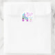 Fiesta de cumpleaños divertida favorece a los pegatinas para una fiesta temática de patinaje sobre ruedas con un ambiente vintage. Un ilustracion dibujado a mano de un patín de rodillos de colores rosa y azul con un fino purpurina dorado que le da forma de iluminación. El texto dice "gracias por rodar conmigo". Personalizar este producto agregando el nombre de su hijo.