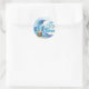 Pegatina redondo clásico de la fiesta de cumpleaños de surf en la playa