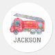 Pegatina Redonda Fiesta de cumpleaños personalizada de Firetruck