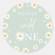 Pegatina Redonda Fiesta de cumpleaños salvaje Boho Retro Daisy Clas