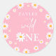 Pegatina Redonda Fiesta de cumpleaños salvaje Boho Retro Daisy Clas